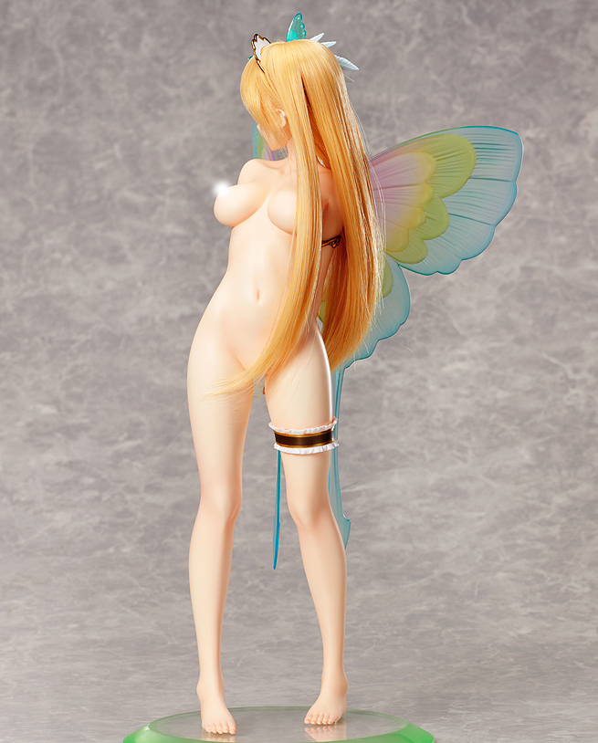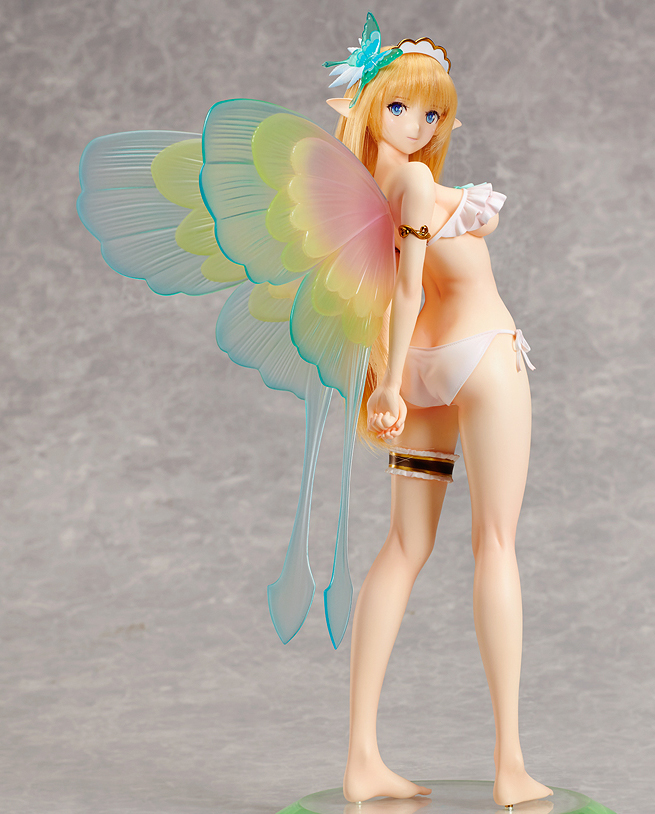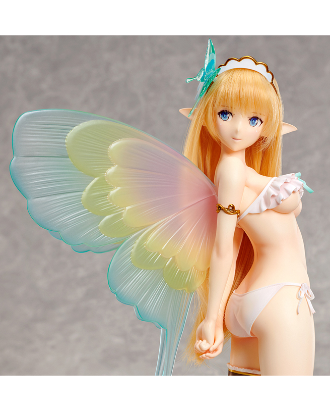 The vivid colors of her wings are recreated using a transparent material, and the way their color changes depending on how they catch the light is much like the wild nature of a sprite that finds joy enchanting humans.