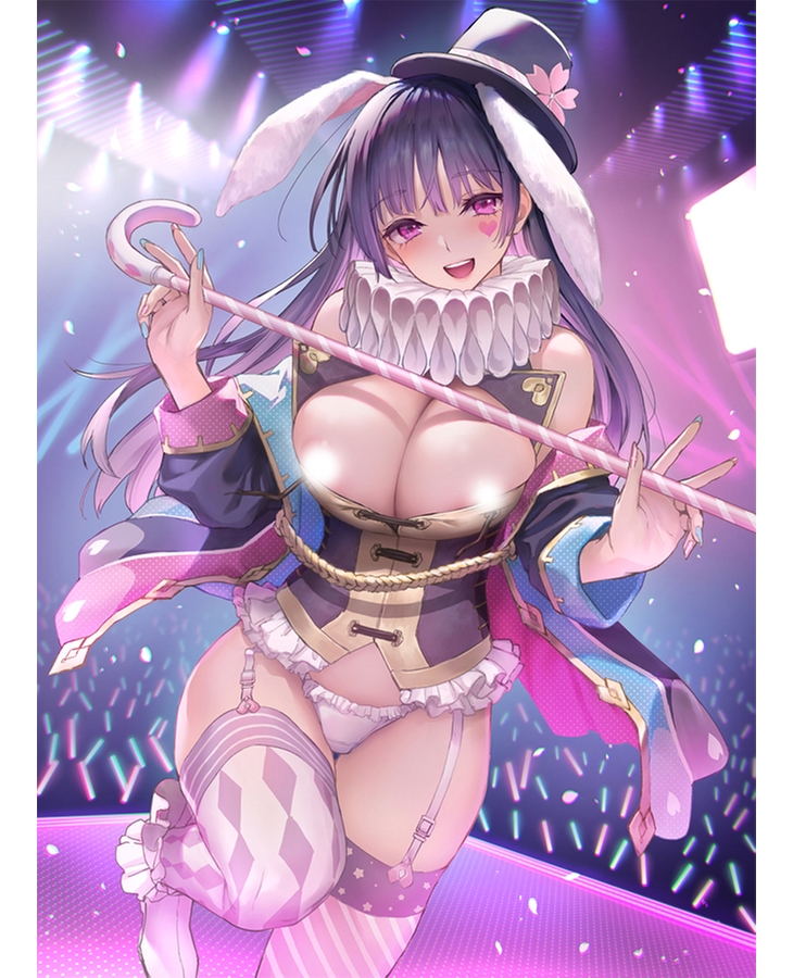 Enjoy Mahiru's adorable expression and her large breasts protruding from her costume!