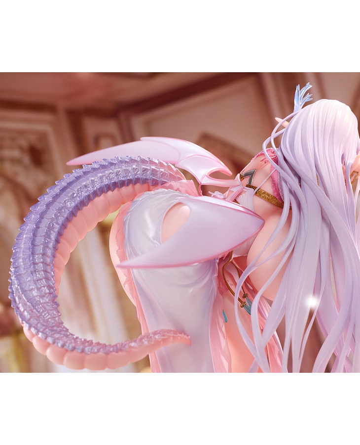 繊細な髪の流れ、汗ばんだ艶やかな肌、透明感のあるツノ、巨大な尻尾を覆う鱗甲等、細部までこだわっております。